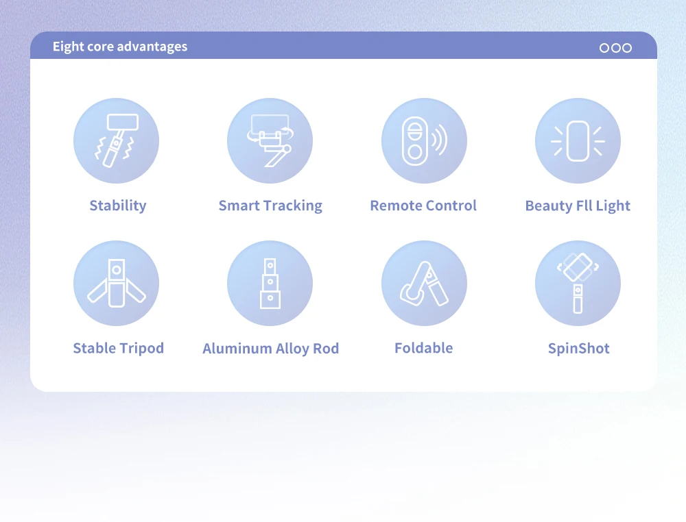 Com o aplicativo dedicado, o tripé acompanha seus movimentos automaticamente, mantendo você sempre centralizado no enquadramento.
